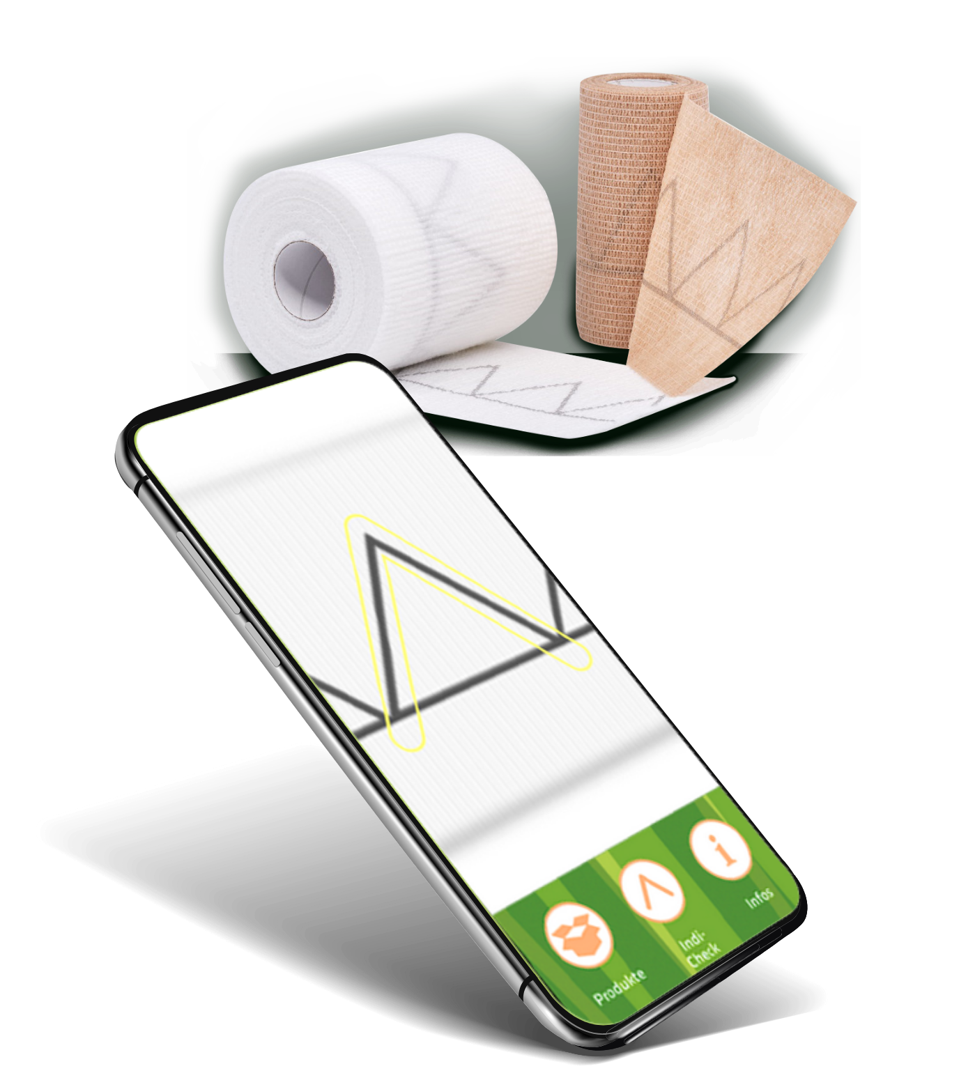 Mit Hilfe der Bamboo Indi-Check App können Sie abgleichen, ob der Indikator des druckreduzierten 2-Komponenten-Kompressionssystems CompriSave® an der gewickelten Extremität in das Beispieldreieck passt und gemäß der Packungsbeilage ein Dreieck bildet, dessen Seiten alle gleich lang sind. Natürlich können Sie CompriSave® auch weiterhin ohne die Bamboo Indi-Check App nutzen.
